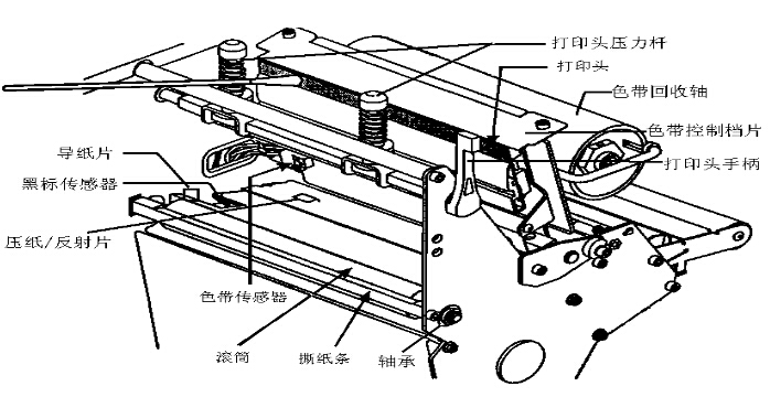 1.安装碳带及条码纸时,按照打印机内的安装指示图即可.