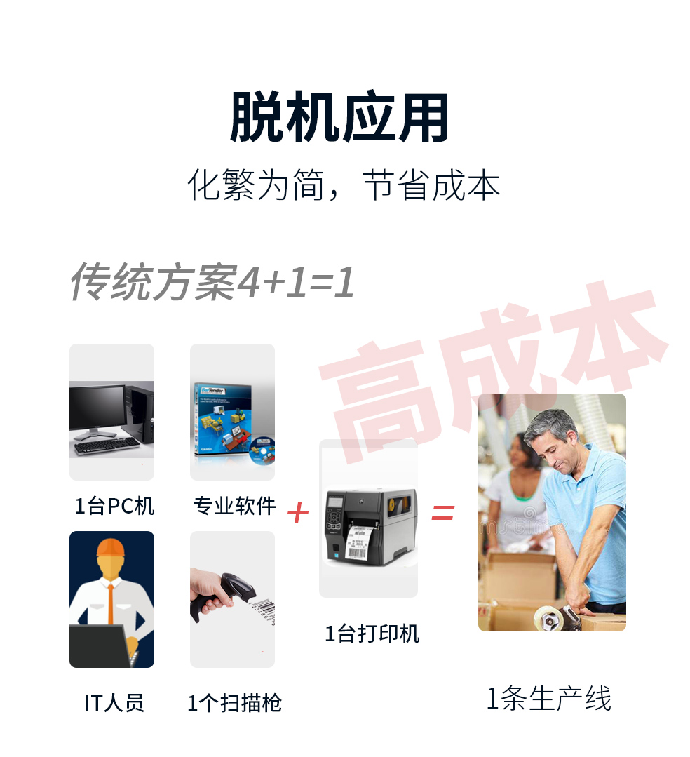1.节省空间、低功耗。 2.外观紧凑美观,小巧轻便,可随时随地使用。 3.可独立工作,脱开电脑和软件的控制,编辑打印可在几秒内完成。 4.外部接口丰富,应用广泛。如:自动化流水线、手机制作行业、物流行业、应用终端行业、制衣行业等等。